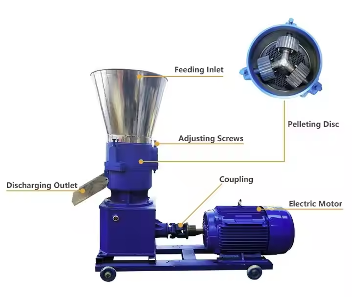 First, ensure the machine is connected to a 220V power supply and check that all parts are intact. Prepare the raw materials (e.g., crushed grains, additives) and mix them evenly. Then, turn on the machine and let it run idle for a few seconds to warm up. Gradually pour the mixed raw materials into the hopper; the machine will extrude and form pellets through the die. Keep an eye on the pellet output to ensure uniformity—adjust the feed rate if needed. After processing, turn off the power, wait for the machine to stop completely, then clean the hopper and die to prevent residue buildup.
