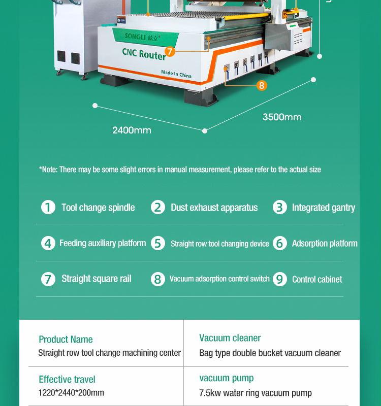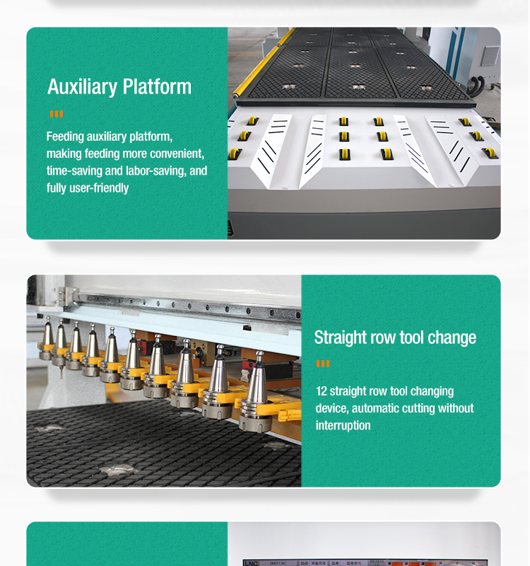 2. Automatic tool-changing spindle: High-quality and high-power spindle, automatic tool change, only return material, high processing efficiency.