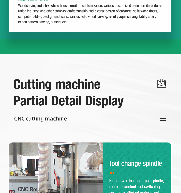 2.Widely used in furniture industry(2D & 3D), furniture decoration industry, carpenter decoration, instrument ndustry, wooden handicraft industry, large plate plane carving, wood furniture carving,