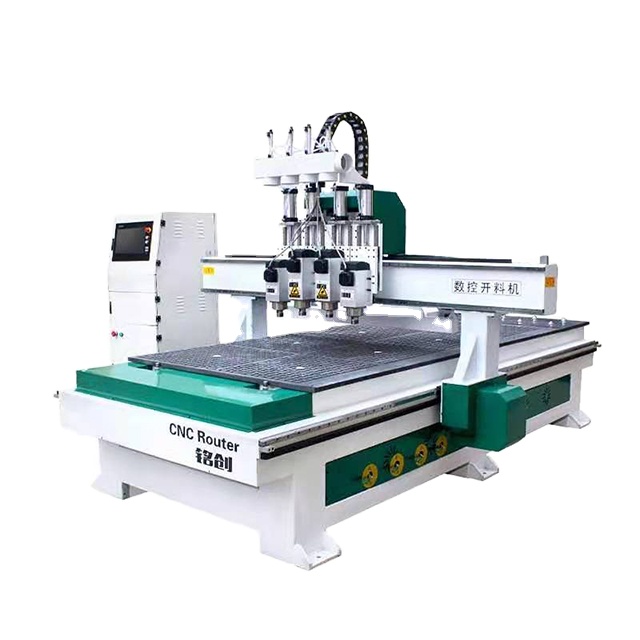 2) Three main spindles: high quality high power spindle, three spindle arbitrary switch, automatic tool change, intelligent push material, high processing efficiency.