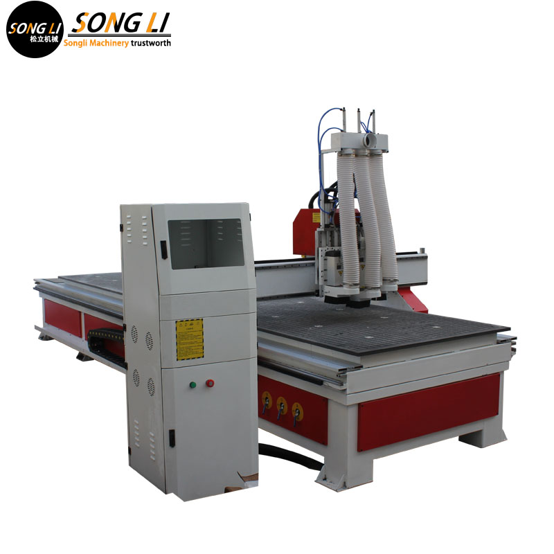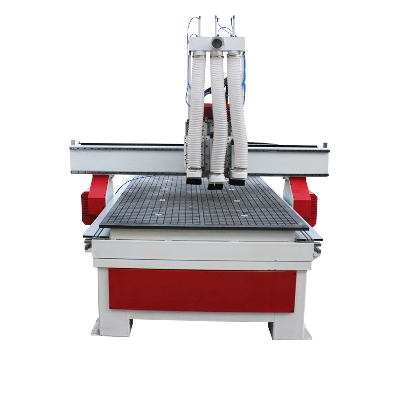 2) Three main spindles: high quality high power spindle, three spindle arbitrary switch, automatic tool change, intelligent push material, high processing efficiency.