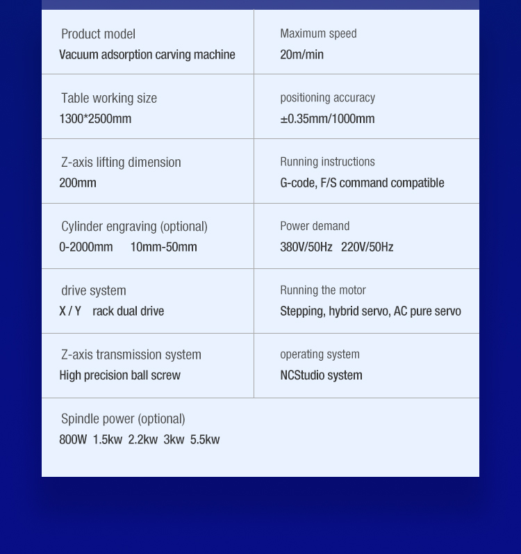 2. Use high subdivision step motor,high speed,low noise,stable operation,large cutting torque.
