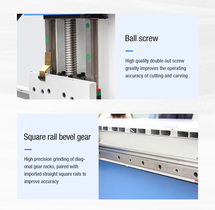 1. Three axis adopts high precision ball screw, imported guide rail,to ensure the machine precision.