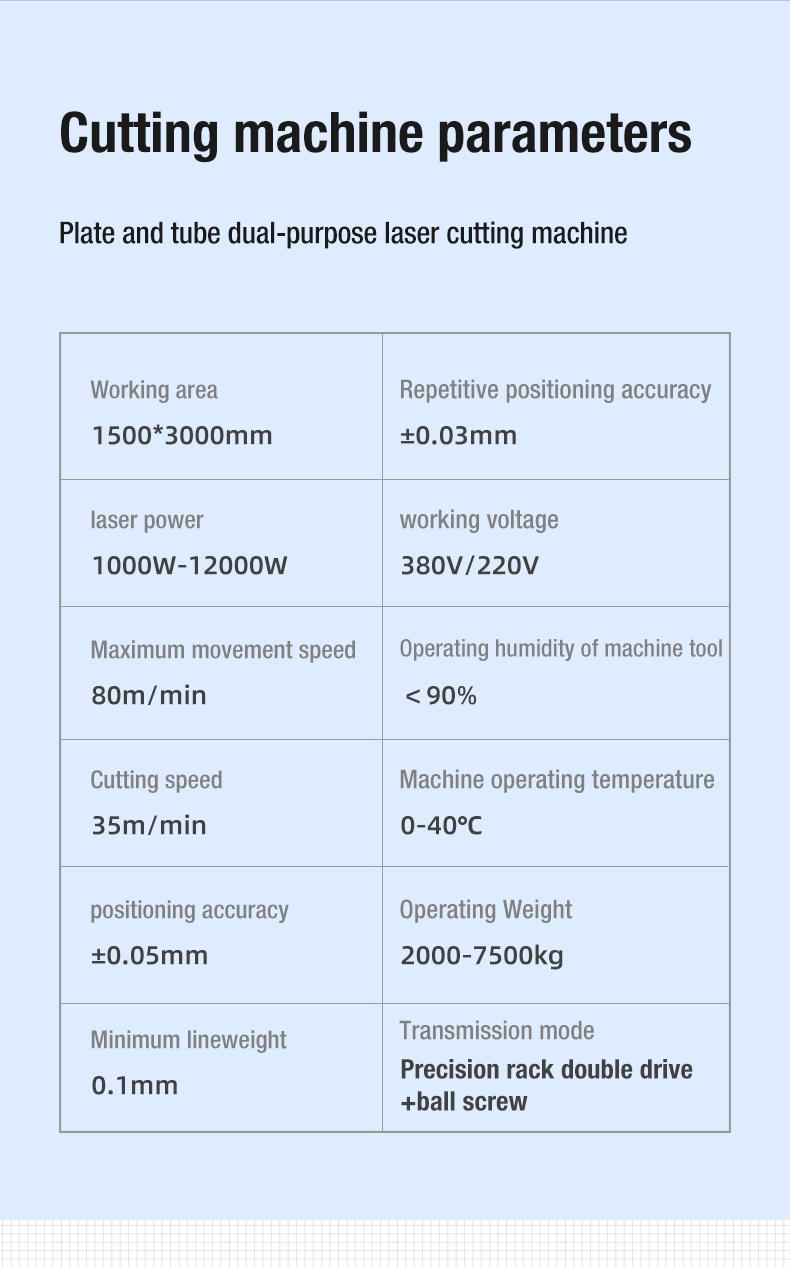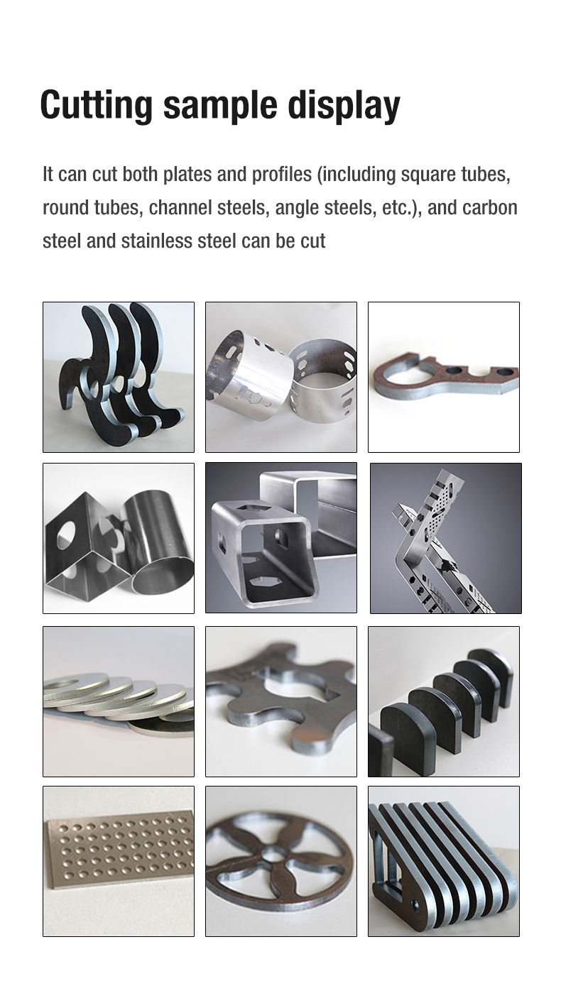 The dual-purpose fiber laser cutting machine for plate and tube can not only cut plates, but also cut profifiles (including square tube, round pipe, channel steel, angle steel, etc.), and can cut carbon steel and stainless steel. One machine is multi-purpose, with high cost performance. Cast iron bed, rack and pinion transmission system, Professional pipe cutting CNC system, high precision, full function, easy to use, simple operation. It is suitable for comprehensive processing and manufacturing enterprises.