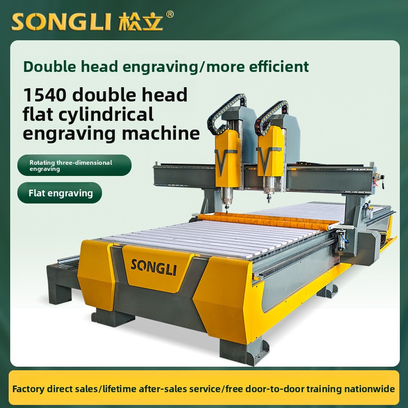 This Songli 1540 double - head flat cylindrical engraving machine, sold directly from the factory, features a double - head design for more efficient simultaneous operations. Capable of both rotating three - dimensional and flat engraving, it suits woodworking, advertising, and relief tasks. Enjoy lifetime after - sales service and free nationwide door - to - door training, ensuring seamless use for precision - driven projects like wood carving, sign production, and creative relief works.