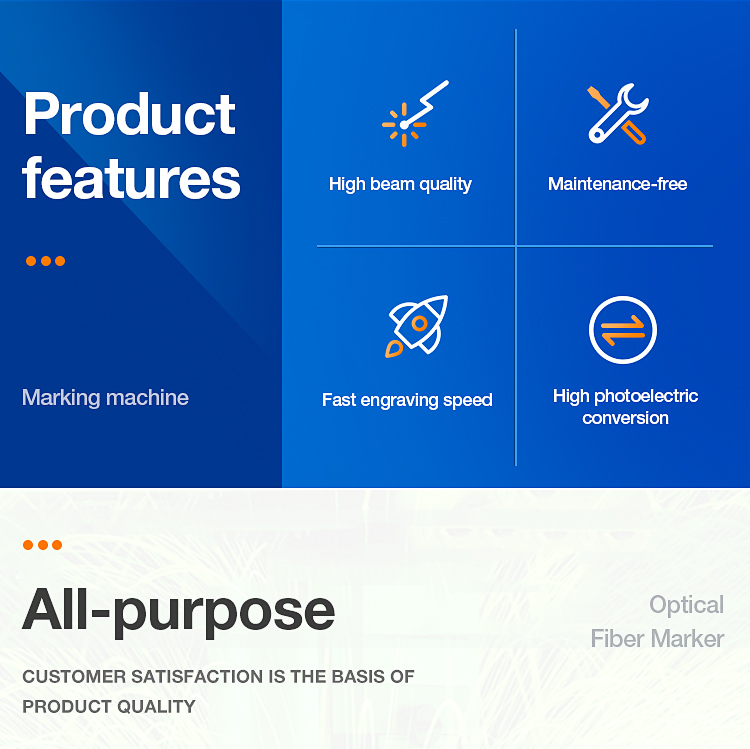 3. Modular design, separate laser generator and lifter, more flexible, can mark on bigger area and complicated surface. Air-cooled inside, small occupation, easy to install.